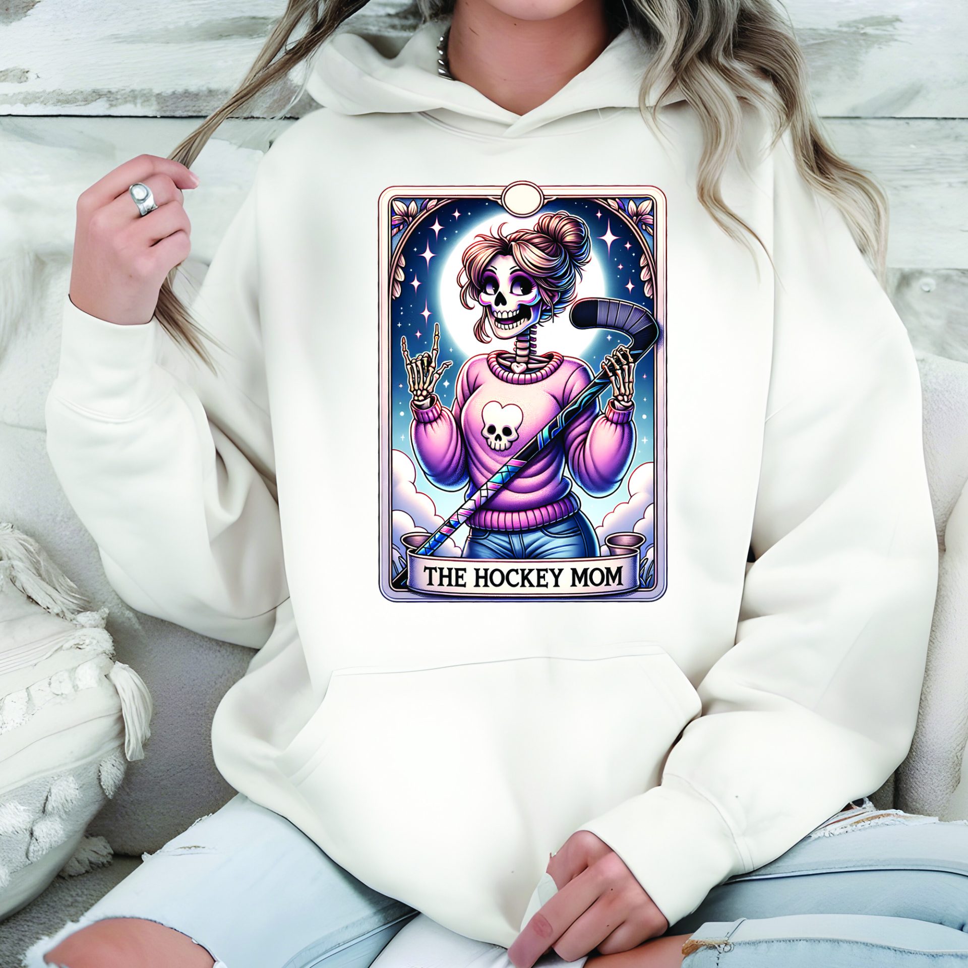 Custom Hockey Mom Hooded Sweatshirt Tarot Card Design – Add Hockey Player Names on Sleeve – Gift for Mom